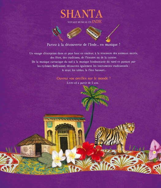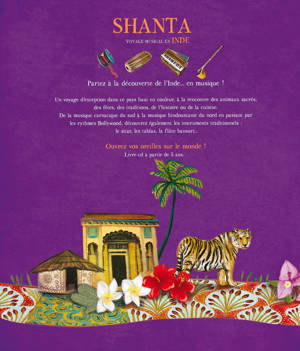 Partez à la découverte de l'Inde... en musique ! Un voyage d'exception dans ce pays haut en couleur, à la rencontre des animaux sacrés, des fêtes, des traditions, de l'histoire ou de la cuisine. De la musique carnatique du sud à la musique hindoustanie du nord en passant par les rythmes Bollywood, découvrez également les instruments traditionnels : le sitar, les tablas, la flûte bansuri... Ouvrez vos oreilles sur le monde ! Livre-cd à partir de 5 ans.
