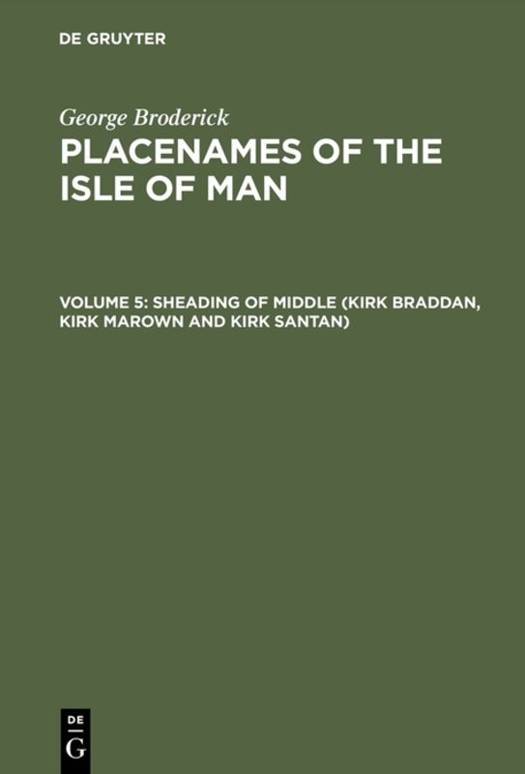 Volume 5 comprises the three central and eastern parishes of Kirk Braddan, Kirk Marown, and Kirk Santan. The material appears in alphabetical form with discussion of any problems of interpretation and a listing of the elements making up the names. This volume yields name-forms and elements not found in Manx literature or dictionaries. As all but a handful of names predate the Scandinavian period (9th-13th centuries) and as documentary material from that time till the 16th century is largely absent, the testimony of place-names is important for the distribution of name elements reflecting the geography and showing patterns of settlement, whether Celtic, Scandinavian, etc, and for comparative place-name research in adjacent areas, particularly Ireland, south-western Scotland, and northern England.