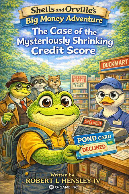 Embarrassed and confused, Orville turns to his best friend Shells the Turtle, the pond's sharpest little detective. Together, they follow a trail of clues—from bank records and invoices to a sneaky "easy financing" truck—until they uncover the truth behind Orville's mysteriously shrinking credit score.