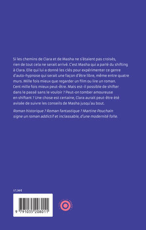 Si les chemins de Clara et de Masha ne s'étaient pas croisés, rien de tout cela ne serait arrivé. C'est Masha qui a parlé du shifting à Clara. Elle qui lui a donné les clés pour expérimenter ce genre d'auto-hypnose qui serait une façon d'être libre, même entre quatre murs. Mille fois mieux que regarder un film ou lire un roman. Cent mille fois mieux peut-être. Mais est-il possible de shifter dans le passé sans le vouloir ? Peut-on tomber amoureuse en shiftant ? Une chose est certaine, Clara aurait peut-être été avisée de suivre les conseils de Masha jusqu'au bout. Roman historique ? Roman fantastique ? Martine Pouchain signe un roman addictif et inclassable, d'une modernité folle.