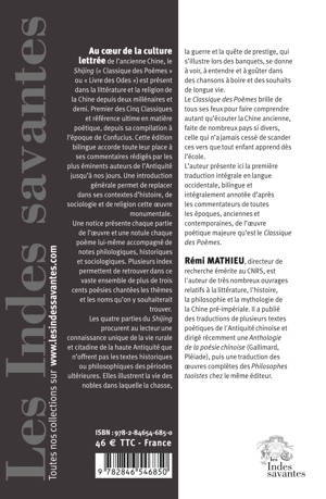 Au coeur de la culture lettrée de l’ancienne Chine, le Shijing (« Classique des Poèmes » ou « Livre des Odes ») est présent dans la littérature et la religion de la Chine depuis deux millénaires et demi. Premier des Cinq Classiques et référence ultime en matière poétique, depuis sa compilation à l’époque de Confucius. Cette édition bilingue accorde toute leur place à ses commentaires rédigés par les plus éminents auteurs de l’Antiquité jusqu’à nos jours. Une introduction générale permet de replacer dans ses contextes d’histoire, de sociologie et de religion cette oeuvre monumentale.