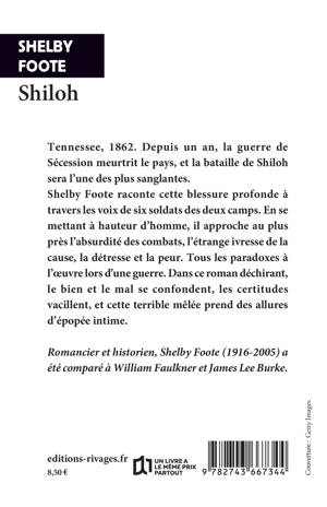 Immense romancier américain, dans la lignée de William Faulkner, Shelby Foote reste un auteur méconnu en France. "Shiloh", l'un de ses livres les plus importants, est une épopée miniature qui raconte la guerre de Sécession en 200 pages à travers la voix de soldats ou lieutenants des deux camps. Chaque chapitre est ciselé à la perfection, explorant la nature humaine, l'absurdité des combats, l'étrange ivresse de la cause et la détresse inévitable devant le spectacle de la violence et la mort. Tous les paradoxes à l'oeuvre dans une guerre. On pense à James Lee Burke, mais aussi à Eric Vuillard pour cet art de raconter à hauteur d'homme un grand moment de l'histoire américaine.