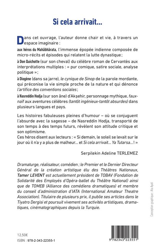 Dans cet ouvrage, l'auteur donne chair et vie, à travers un espace imaginaire : aux héros du Mahâbhârata, à Don Quichotte, à Diogène, à Nasreddin Hodja. Les histoires fabuleuses pleines d'humour - où se conjuguent l'absurde avec la sagesse - de Nasreddin Hodja, transporté de son temps à des temps futurs, révèlent son attitude critique et son optimisme. Ces héros disent aux lecteurs : « Si demain, le soleil se levait sur le jour où il n'a y a plus de malheur... et Si cela arrivait... Ya Tutarsa... ! » Serpilekin Adeline TERLEMEZ