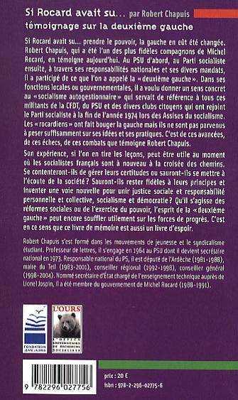Si Rocard avait su... prendre le pouvoir, la gauche en eût été changée. Les "rocardiens" ont fait bouger la gauche mais ne sont pas parvenus à peser suffisamment sur ses idées et ses pratiques. C'est de ces avancées, de ces échecs, de ces combats que témoigne cet livre. Cette expérience peut être utile à un moment où les socialistes français sont de nouveau à la croisée des chemins. L'esprit de la "deuxième gauche" peut encore souffler utilement sur les forces de progrès. C'est en ce sens que ce livre de mémoire est aussi un livre d'espoir.e
