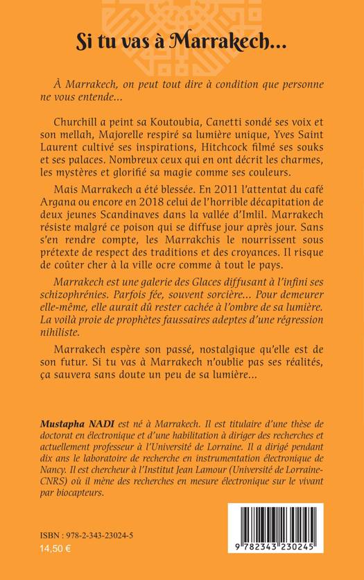 À Marrakech, on peut tout dire à condition que personne ne vous entende...Nombreux sont ceux qui en ont décrit ses charmes, ses mystères et glorifié sa magie comme ses couleurs. Mais Marrakech a été blessée. En 2011 l'attentat du café Argana ou encore en 2018 celui de l'horrible décapitation de deux jeunes Scandinaves dans la vallée d'Imlil. Marrakech résiste malgré ce poison qui se diffuse jour après jour. Sans s'en rendre compte, les Marrakchis le nourrissent sous prétexte de respect des traditions et des croyances. Il risque de coûter cher à la ville ocre comme à tout le pays.