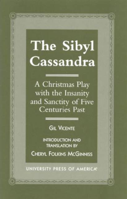 In The Sibyl Cassandra: A Christmas Play with the Insanity and Sanctity of Five Centuries Past, the sixteenth century play by Gil Vicente is translated in full, and provided with a full introduction by Cheryl Folkins McGinniss. Cassandra, the heroine, is a young woman who rebels against the expectations and roles that society has placed upon her. Her refusal to marry causes outrage and chaos. Amid song and dance, she is accused of blasphemy and madness until the nativity scene is magically revealed. All is restored through Christ-or is it? The translator has "unpacked" this fascinating drama from an ancestral trunk for its renewed display and enjoyment during the Christmas season.
