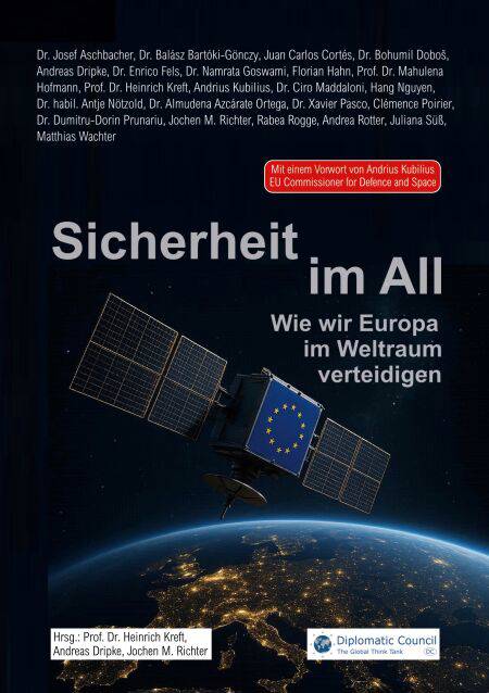 Autoren: Dr. Josef Aschbacher, Generaldirektor Europäische Weltraumagentur (ESA); Dr. Balasz Bartóki-Gönczy, Vize-Dekan Universität für Offentliche Verwaltung, Budapest; Dr. Bohumil Dobos, Karls-Universität Prag; Andreas Dripke, Executive Chairman Diplomatic Council; Dr. Enrico Fels, Geschäftsführer CASSIS, Universität Bonn; Dr. Namrata Goswami, Prof. für Weltraumsicherheit, Johns Hopkins University; Staatsminister Florian Hahn, Auswärtiges Amt, MdB; Prof. Dr. Mahulena Hofmann, SES Chair Space, SatCom, Media Law, Universität Luxemburg; Prof. Dr. Heinrich Kreft, Botschafter a.D., Präsident Diplomatic Council, Programmdirektor an der Diplomatischen Akademie des Auswärtigen Amts; Andrius Kubilius, EU-Kommissar für Verteidigung und Raumfahrt; Dr. Ciro Maddaloni; Hang Nguyen, Verlegerin Diplomatic Council; Dr. habil. Antje Nötzold, Privatdozentin und Wissenschaftliche Mitarbeiterin, TU Chemnitz & Universität der Bundeswehr; Almudena Azcarate Ortega, Leit. Wissenschaftlerin für Weltraumsicherheit und Programm zu Massenvernichtungswaffen, Institut für Abrüstungsforschung der UN (UNIDIR); Dr. Xavier Pasco, Direktor Stiftung für Strategische Forschung, Paris; Clémence Poirier, Senior Researcher ETH Zürich; Dr. Dumitru-Dorin Prunariu, ehem. Präsident der Rumänischen Weltraumagentur; Juan Carlos Cortes, Generaldirektor der Spanischen Weltraumagentur; Jochen M. Richter, Chairman Diplomatic Council Global Security Forum; Andrea Rotter, Leiterin Außen- und Sicherheitspolitik, Hanns-Seidel-Stiftung; Rabea Rogge, erste deutsche Astronautin im All; Juliana Süß, Wissenschaftlerin Sicherheitspolitik, "Strategische Bedrohungsanalysen und nukleare (Un-)Ordnung", Stiftung Wissenschaft und Politik; Matthias Wachter, Geschäftsführer NewSpace Initiative, Abteilungsleiter Intl. Zusammenarbeit, Sicherheit, Rohstoffe & Raumfahrt BDI (Bundesverband der Deutschen Industrie).