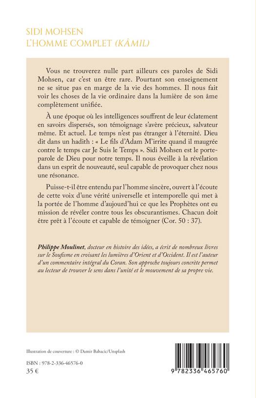 Vous ne trouverez nulle part ailleurs ces paroles de Sidi Mohsen, car c’est un être rare. Pourtant son enseignement ne se situe pas en marge de la vie des hommes. Il nous fait voir les choses de la vie ordinaire dans la lumière de son âme complètement unifiée. À une époque où les intelligences souffrent de leur éclatement en savoirs dispersés, son témoignage s’avère précieux, salvateur même. Et actuel. Le temps n’est pas étranger à l’éternité. Dieu dit dans un hadith : « Le fils d’Adam M’irrite quand il maugrée contre le temps car Je Suis le Temps ». Sidi Mohsen est le porte-parole de Dieu pour notre temps. Il nous éveille à la révélation dans un esprit de nouveauté, seul capable de provoquer chez nous une résonance.