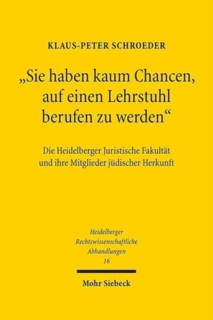 Mit dem Tod des nach Amerika emigrierten Romanisten Ernst Levy im September 1968 fand eine Epoche der Heidelberger Fakultatsgeschichte ihren definitiven Beschluss, die zu den grossartigsten ihrer langen Geschichte zahlt. Wesentlich beigetragen haben zu dem bis heute bestehenden internationalen Renommee der Heidelberger Juristischen Fakultat insbesondere Rechtslehrer judischer Herkunft. Ein aussergewohnlich offenes, liberales geistiges Klima zeichnete die Ruperto Carola von der zweiten Halfte des 19. Jahrhunderts bis zum Beginn der Hitlerei aus. Gefordert wurde die Bereitschaft der Fakultat, Gelehrte judischer Herkunft zu berufen, auch durch die Karlsruher Regierung. Klaus-Peter Schroeder erganzt mit dieser Studie die bereits 2011 vorgelegte Geschichte der Heidelberger Juristischen Fakultat im 19. und 20. Jahrhundert um eine vertiefende Darstellung der herausragenden Leistungen, welche die Rechtsgelehrten judischer Abstammung fur die Ruperto Carola erbracht haben, wachst doch zusehends die Gefahr, dass sie nach mehr als siebzig Jahren seit Ende des Zweiten Weltkriegs in Vergessenheit geraten.