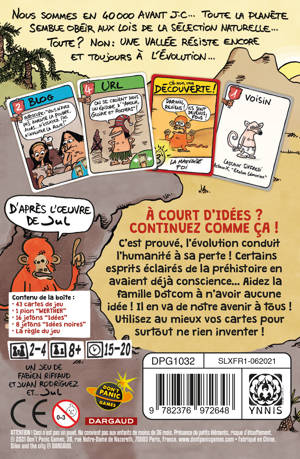 But du jeu : Jouez habilement les cartes de la famille Dotcom (Web, Blog, Url et Spam) ainsi que les cartes « Voisins ». Au final, soyez le joueur ayant le moins participé à l’Évolution. Le gagnant est le joueur avec le moins de points d’Évolution à la fin de la partie. Ces points se trouvent sur les jetons silex « Idée », « Idée Noire » et sur les cartes « Découverte ».