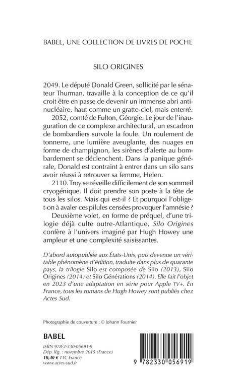 En 2049, le monde est encore tel que nous le connaissons, mais le temps est compté. Seuls quelques potentats savent ce que l'avenir réserve... Deuxième volet, en forme de prequel, de la trilogie culte "Silo", qui confère à l'univers imaginé par Hugh Howey une ampleur et une complexité saisissantes.