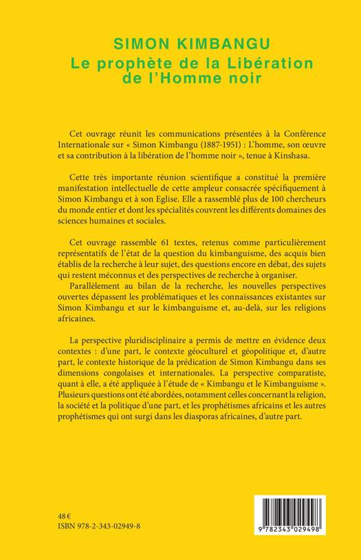 Cet ouvrage en 2 tomes rassemble 61 textes, représentatifs de l'état de la question du kimbanguisme, des acquis bien établis de la recherche à leur sujet, des questions encore en débat, des sujets qui restent méconnus et des perspectives de recherche à organiser. Les nouvelles perspectives ouvertes dépassent les problématiques et les connaissances existantes sur Simon Kimbangu et sur le kimbanguisme et, au-delà, sur les religions africaines.