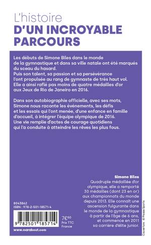 Dans son autobiographie officielle, avec ses mots, Simone nous raconte les événements, les défis et les essais qui l’ont menée, d’une enfance en famille d’accueil, à intégrer l’équipe olympique de 2016.