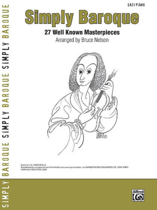 Simply Baroque is a collection of arias, choral works, concerto themes, dances, and keyboard and string masterpieces from the Baroque period of music history. These selections have been carefully arranged by Bruce Nelson for Easy Piano, making them accessible to pianists of all ages. Phrase markings, articulations, fingering, pedaling and dynamics have been included to aid with interpretation, and a large print size makes the notation easy to read. Titles: Arrival of the Queen of Sheba (from Solomon) (Handel) * Brandenburg Concerto No. 3 (Allegro) (Bach) * Canon in D (Pachelbel) * Cello Suite No. 1 in G Major (Bach) * Christmas Concerto (Allegro) (Corelli) * Christmas Concerto (Adagio) (Corelli) * Concerto a due cori No. 2 (Allegro ma non troppo) (Handel) * Concerto in D Major (Largo) (Vivaldi) * Gloria (Vivaldi) * Hallelujah Chorus (from Messiah) (Handel) * Hornpipe (from Water Music) (Handel) * Jesu, Joy of Man's Desiring (Bach) * Mandolin Concerto in C Major (Allegro) (Vivaldi) * Minuet in G Major (from J. S. Bach's Notebook for Anna Magdalena Bach) (Petzold) * Prelude (from Te Deum) (Charpentier) * Prince of Denmark's March (Clarke) * Ombra ma fù (from Serse) (Handel) * Rondeau (from Suite de symphonies) (Mouret) * Rondeau (from Abdelazer) (Purcell) * Sheep May Safely Graze (Bach) * Sonata in G Major (Scarlatti) * Spring (from The Four Seasons) (Vivaldi) * Tambourin (Drum Song) (Rameau) * Toccata (from L'Orfeo) (Monteverdi) * Toccata in D Minor (Bach) * Viola Concerto in D Major (Largo) (Telemann) * When I Am Laid in Earth (from Dido and Aenaes) (Purcell).