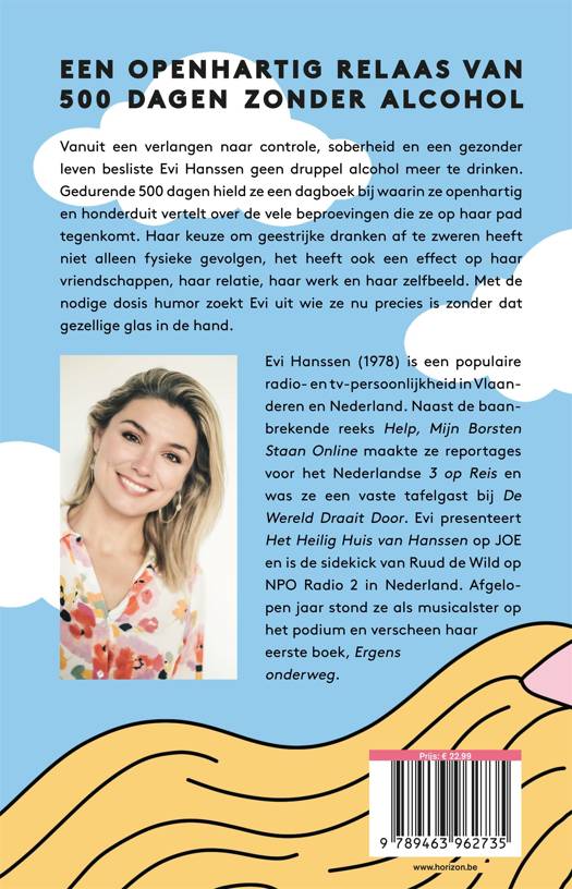 Vanuit een verlangen naar controle, soberheid en een gezonder leven besliste Evi Hanssen geen druppel alcohol meer te drinken. Gedurende 500 dagen hield ze een dagboek bij waarin ze openhartig en honderduit vertelt over de vele beproevingen die ze op haar pad tegenkomt. Haar keuze om geestrijke dranken af te zweren heeft niet alleen fysieke gevolgen, het heeft ook een effect op haar vriendschappen, haar relatie, haar werk en haar zelfbeeld. Met de nodige dosis humor zoekt Evi uit wie ze nu precies is zonder dat gezellige glas in de hand.