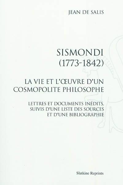 Biographie de référence de ce philosophe, économiste et historien suisse, avec une analyse de ses oeuvres principales et une sélection de lettres et de documents inédits.