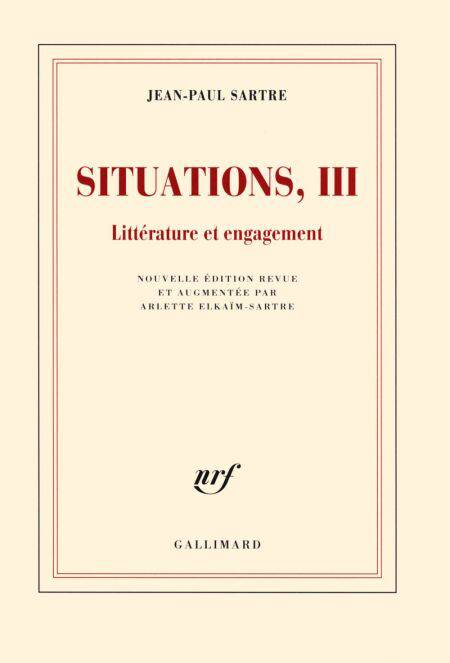 Dans son essai Qu'est-ce que la littérature ? (1947), Sartre analyse les différents rôles que cette activité a tenus dans la société française, du XVIIe siècle à la Seconde Guerre mondiale, et explique les raisons qui l'ont poussé à opter pour la littérature engagée ; il se prépare résolument à "avoir le monde entier sur la tête", selon l'expression de Jean Paulhan, parfois au détriment de son œuvre propre – articles sur la future naissance d'Israël (1948), sur la guerre d'Indochine (1949), appartenance au Rassemblement démocratique révolutionnaire dans l'espoir de contribuer à conjurer la menace de 'guerre atomique' entre l'Union soviétique et les États-Unis. Il continue néanmoins à s'intéresser à d'autres aspects de la littérature, à Franz Kafka, à Nathalie Sarraute, aussi bien qu'aux poètes de la Négritude, à l'art de Giacometti comme à l'avenir de la culture.