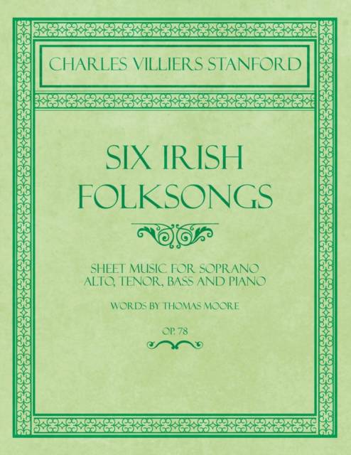 Sir Charles Villiers Stanford (1852 - 1924) was an Irish composer, conductor, and teacher of music. He was educated at the University of Cambridge and continued his studies in Berlin and Leipzig. He was a very influential composer, responsible for making Cambridge University Musical Society an internationally-acclaimed organisation. Stanford was also a profuse composer, producing a large corpus of work in many genres; however, he is perhaps best remembered for his Anglican choral works for church performance. His music eventually became overshadowed by that of Edward Elgar and a number of his former pupils in the 20th century. This volume contains the original sheet music for six Irish folk-songs, composed by Stanford and written by Sir Thomas Moore. They include: "Oh! Breathe Not His Name", "What the Bee is to the Flow'ret", "At the Mid Hour of Night", "The Sword of Erin", "It is Not the Tear", and "Oh, The Sight Entrancing". The music is for alto, tenor, bass and piano. Many vintage books such as this are becoming increasingly scarce and expensive. We are republishing this volume now in a modern, high-quality edition complete with a specially commissioned new introduction on the history of musical notation.