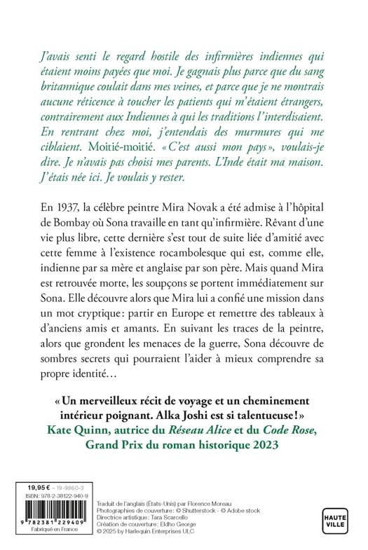 « Un merveilleux récit de voyage et un cheminement intérieur poignant. Alka Joshi est si talentueuse ! » Kate Quinn, autrice du Réseau Alice et du Code Rose, Grand Prix du roman historique 2023