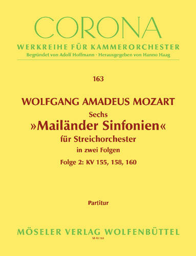 Die "Mailänder Sinfonien", KV 155-160 schrieb Mozart während seiner dritten Italien-Reise, Oktober 1772 bis März 1773, die er zusammen mit seinem Vater unternahm. Im Mittelpunkt der Reise stand die erste Aufführung der Oper "Lucio Silla" in Mailand. Am 28. Oktober schrieb Leopold Mozart in einem Brief aus Bozen "... Der Wolfg. befindet sich auch wohl; er schreibt eben für die lange Weile ein Quatro ..." und am 6. Februar teilt er aus Mailand mit "... der Wolfgang schreibt ein Quartetto ...". Lange Zeit wurden die erwähnten "Quatros" als Streichquartette angesehen. Erst in der Auflage des Köchel-Verzeichnisses von 1965 wurden drei der sechs Stücke als Divertimenti klassifiziert und zwar aufgrund der von Mozart eigenhändig vermerkten Instrumentenverzeichnung "Violini / Viole / Violoncello / Basso" bzw. "Violini / Viole / Basso". Eine Ausgabe als Orchesterquartette ist von daher, auch wegen der musikalischen Faktur der Stücke, gerechtfertigt. Die Werke stehen in der Tradition Samartinis; sie sind eine Weiterentwicklung der "Salzburger Sinfonien", KV 136-138. Schwierigkeitsgrad: 3-4