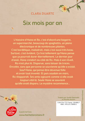 L’histoire d’Hana et Ro, c’est d’abord une bagarre, un supermarché, beaucoup de spaghettis, un piano électronique et de nombreuses plantes. C’est bordélique, maladroit, mais c’est aussi très beau. Surtout, c’est évident. Ça l’est tellement qu’Hana pense que ça pourrait durer éternellement. Le dernier jour d’août, Hana s’endort au côté de Ro. Mais à son réveil, Ro n’est plus là. Disparue, sans laisser de traces. Envolée, sans que personne se souvienne qu’elle a existé. Sauf Hana, qui pense être devenue folle et avoir tout inventé. Et puis soudain, en mars, Ro réapparaît. Ses amis agissent comme si elle avait toujours été là. Seule Hana se souvient qu’elle avait disparu. Le mystère recommence…