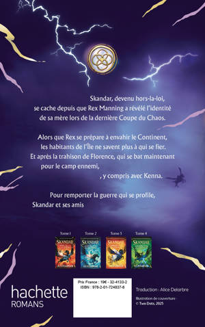 L’Île est en guerre. Skandar, devenu hors-la-loi, se cache depuis que Rex Manning a révélé l’identité de sa mère lors de la dernière Coupe du Chaos. Mais alors que Rex se prépare à envahir le continent, les habitants de l’Île ne savent plus à qui se fier. Et après la trahison de Florence, qui se bat maintenant pour le camp ennemi, Skandar doit construire de nouvelles alliances, y compris avec Kenna. Pour remporter la Guerre de l’Esprit, Skandar et ses amis devront remonter aux origines de l’Île et exploiter toute la puissance de leur magie.