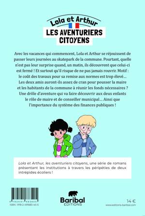Avec les vacances qui commencent, Lola et Arthur se réjouissent de passer leurs journées au skatepark de la commune. Pourtant, quelle n’est pas leur surprise quand, un matin, ils découvrent que celui-ci est fermé ! Et surtout qu’il risque de ne pas jamais rouvrir. Motif : le coût des travaux pour sa remise aux normes est trop élevé… Les deux amis auront-ils assez de cran pour pousser la maire et les habitants de la commune à réunir les fonds nécessaires ? Une drôle d’aventure qui va faire découvrir aux deux enfants le rôle de maire et de conseiller municipal… Ainsi que l’importance du système des finances publiques !