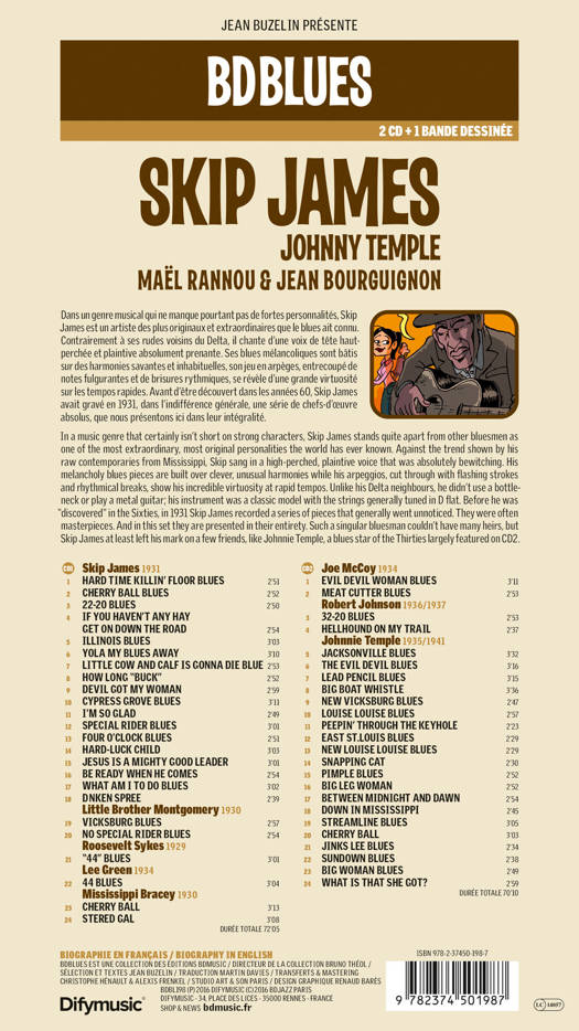 La biographie de Skip James par Mael Rannou, illustrée par Jean Bourguignon et accompagnée de 2 compacts discs