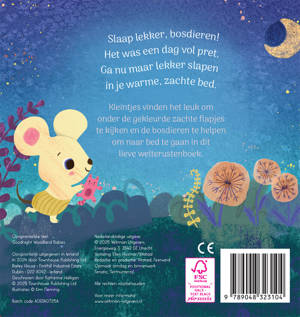 Kleintjes vinden het leuk om onder de gekleurde zachte flapjes te kijken en de bosdieren te helpen om naar bed te gaan in dit lieve welterustenboek.