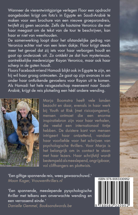 Wanneer de vierentwintigjarige verlegen Floor een opdracht aangeboden krijgt om foto’s in Egypte en Saudi-Arabië te maken voor een brochure van een nieuwe groepsrondreis, twijfelt zij geen seconde. Zelfs de hautaine Veronica die met haar meegaat om de tekst van de tour te beschrijven, kan haar er niet van weerhouden.