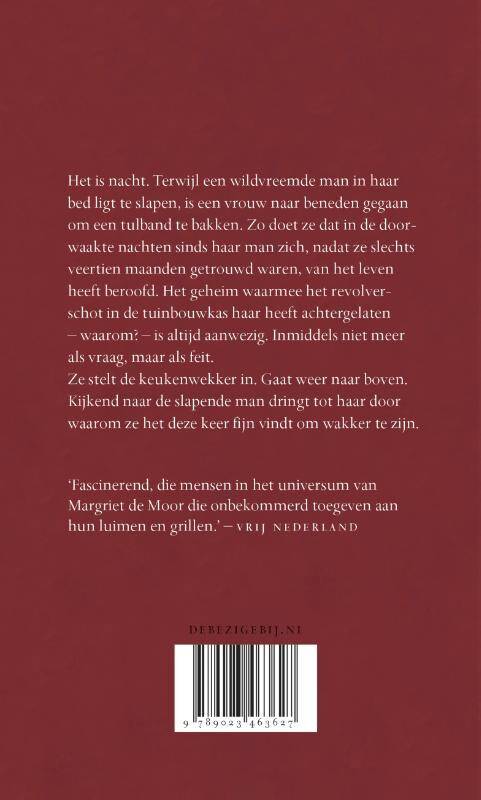 Het is nacht. Terwijl een wildvreemde man in haar bed ligt te slapen, is een vrouw naar beneden gegaan om een tulband te bakken. Zo doet ze dat in de doorwaakte nachten sinds haar man zich, nadat ze slechts veertien maanden getrouwd waren, van het leven heeft beroofd. Het geheim waarmee het revolverschot in de tuinbouwkas haar heeft achtergelaten – waarom? – is altijd aanwezig. Inmiddels niet meer als vraag, maar als feit.