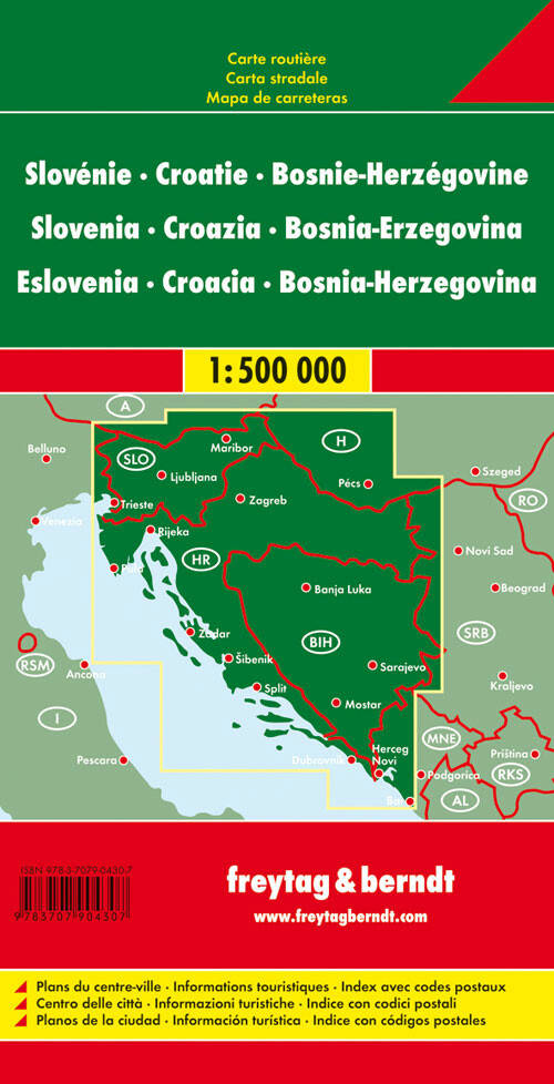 Deze gedetailleerde landkaart van Slovenië - Kroatië - Bosnië-Hercegovina is zeer geschikt voor het plannen en voor het rondtrekken door het land.