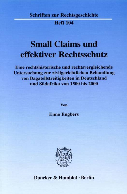 Eine Rechtshistorische Und Rechtsvergleichende Untersuchung Zur Zivilgerichtlichen Behandlung Von Bagatellstreitigkeiten in Deutschland Und Sudafrika Von 15 Bis 2