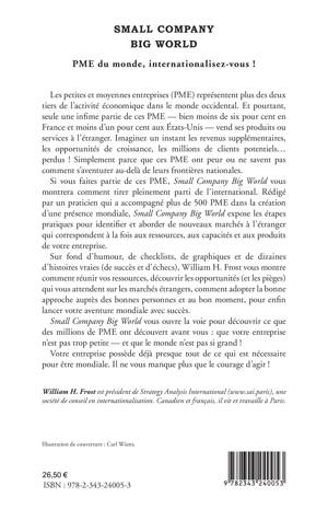 Les petites et moyennes entreprises (PME) représentent plus des deux tiers de l'activité économique dans le monde occidental. Et pourtant, seule une infime partie de ces PME vend ses produits ou services à l'étranger. Imaginez un instant les revenus supplémentaires, les opportunités de croissance, les millions de clients potentiels... perdus ! Simplement parce que ces PME ont peur ou ne savent pas comment s'aventurer au-delà de leurs frontières nationales. Si vous faites partie de ces PME, cet ouvrage vous montrera comment tirer pleinement parti de l'international. Rédigé par un praticien qui a accompagné plus de 500 PME dans la création d'une présence mondiale, il expose les étapes pratiques pour identifier et aborder de nouveaux marchés à l'étranger qui correspondent à votre entreprise. Sur fond d'humour, de checklists, de graphiques et de dizaines d'histoires vraies (de succès et d'échecs), l'auteur montre comment réunir vos ressources, découvrir les opportunités (et les pièges) qui vous attendent sur les marchés étrangers, et comment adopter la bonne approche pour enfin lancer votre aventure mondiale avec succès.