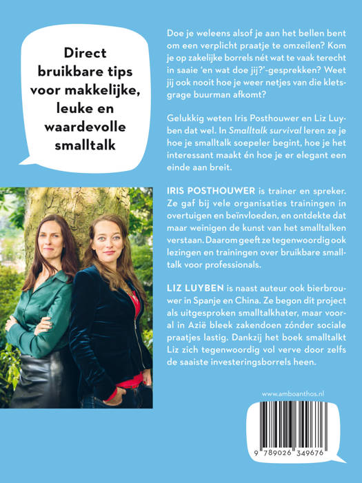 Smalltalk Survival: direct bruikbare tips voor makkelijke, leuke en waardevolle smalltalk. Van Liz Luyben en Iris Posthouwer.