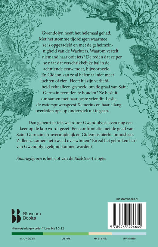 Smaragdgroen is de opvolger van Saffierblauw en Robijnrood. De trouwe Edelsteentrilogie-fans kunnen niet wachten op dit derde en laatste deel van deze megasuccesvolle serie. De Edelsteentrilogie heeft inmiddels een actieve en hechte fanbase en er komen nog elke dag nieuwe fans bij.