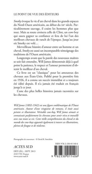 Merveilleuse histoire d'amour entre un homme et un cheval, «Smoky» est aussi un incomparable témoignage des traditions de l'Ouest américain. Longtemps avant que la parole des nouveaux maîtres se soit fait entendre, Will James démontrait déjà à quel point la patience, le respect et l'amour permettent d'obtenir le meilleur d'un cheval.