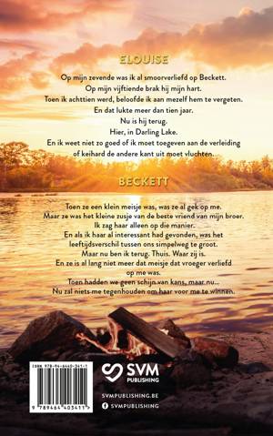 Elouise Op mijn zevende was ik al smoorverliefd op Beckett. Op mijn vijftiende brak hij mijn hart. Toen ik achttien werd, beloofde ik aan mezelf hem te vergeten. En dat lukte meer dan tien jaar. Nu is hij terug. Hier, in Darling Lake. En ik weet niet zo goed of ik moet toegeven aan de verleiding of keihard de andere kant uit moet vluchten.