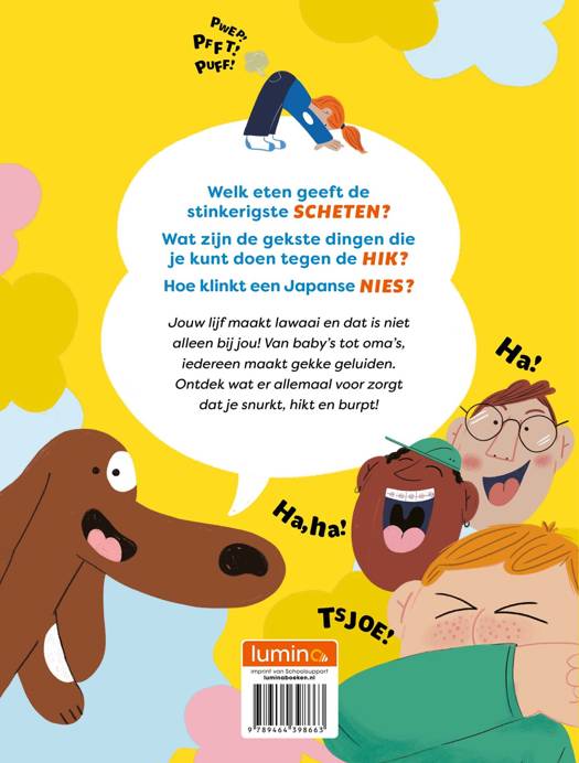 Je maag knort, je buik borrelt en misschien praat je wel in je slaap. Elk lichaam maakt de gekste geluiden. Van baby’s tot oma’s, en ook dieren kunnen er wat van! Hond Charlie vertelt je er alles over in dit boek boordevol interessante en vooral grappige weetjes. Na het lezen weet je precies welke gekke dingen helpen als je de hik hebt, hoe je in het Japans moet niezen en wat je moet eten voor de stinkerigste scheten. Laat je verbazen door dit hilarische boek over je eigen lijf!