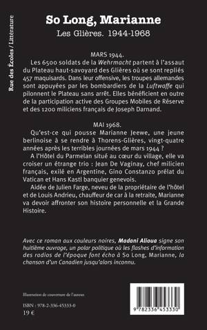 MAI 1968. Qu’est-ce qui pousse Marianne Jeewe, une jeune berlinoise à se rendre à Thorens-Glières, vingt-quatre années après les terribles journées de mars 1944 ? A l’Hôtel du Parmelan situé au cœur du village, elle va croiser un étrange trio : Jean De Vaginay, chef milicien français, exilé en Argentine, Gino Constanzo prélat du Vatican et Hans Kastl banquier genevois. Aidée de Julien Farge, neveu de la propriétaire de l’hôtel et de Louis Andrieu, chauffeur de car à la retraite, Marianne va devoir affronter son histoire personnelle et la Grande Histoire.
