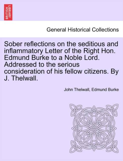 Sober Reflections on the Seditious and Inflammatory Letter of the Right Hon. Edmund Burke to a Noble Lord. Addressed to the Serious Consideration of His Fellow Citizens. by J. Thelwall.