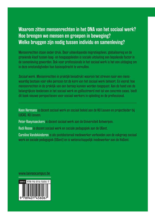 Sociaal werk. Mensenrechten in praktijk benadrukt waarom het streven naar een menswaardig bestaan voor elke persoon tot de kern van het sociaal werk behoort. En vooral: hoe mensenrechten in de praktijk van een beroep kunnen worden toegepast. Aan de hand van de belangrijkste tendensen in het sociaal werk en gellustreerd met tal van concrete cases, biedt dit boek nieuwe perspectieven voor sociaal werkers in opleiding en de professional.