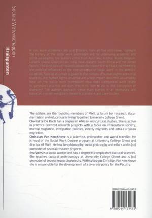 The editors are the founding members of Mix!t, a forum for research, documentation and education in living/together, University College Ghent. Charlotte De Kock has a degree in African and cultural studies. She is active in practice oriented research projects with a focus on intercultural society, marital migration, integration policies, elderly migrants and intra-European migration. Christian Van Kerckhove is a scientist, philosopher and world traveller. He is head of the Social Work Degree program at University College Ghent and director of Mix!t. He teaches philosophy, social philosophy and ethics and is (co) promoter of several research projects. Eva Vens is a social worker and has a degree in comparative cultural sciences. She teaches cultural anthropology at University College Ghent and is (co) promotor of several research projects. With colleague Christian Van Kerckhove she is responsible for the development of a diversity policy for the Faculty.