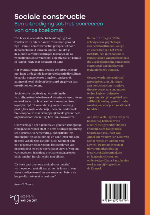 Kenneth J. Gergen (1935) is hoogleraar psychologie aan het Swarthmore College en voorzitter van het TAOS Institute, een internationale gemeenschap van professionals die via de toepassing van sociale constructie aan beloftevolle toekomsten wil bouwen.