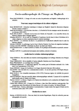 Mémoire et représentation du patrimoine, image et communication sociale, telle est la thématique transversale aux deux dossiers présentés dans ce livre. le premier dossier, Nouveaux usages touristiques de la culture religieuse, pose la question de la construction sociale de la mémoire du patrimoine et de sa représentation par une mise en images. Le second dossier, Audiovisuel et création cinématographique, questionne la production cinématographique et sa diffusion de masse.