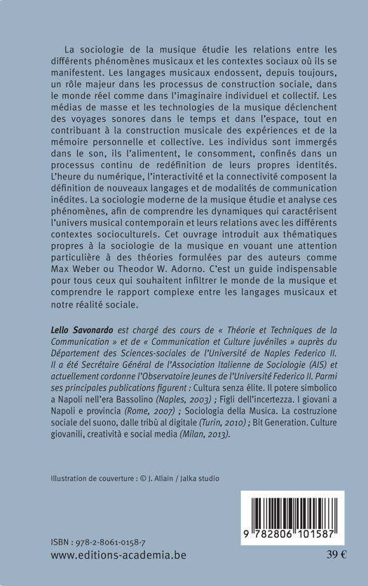 Les individus sont immergés dans le son, ils l'alimentent, le consomment, dans un processus continu de redéfinition de leurs propres identités. A l'ère du numérique, l'interactivité et la connectivité participent à la définition de nouveaux langages et de modalités inédites de communication. Cet ouvrage est un guide indispensable pour ceux qui cherchent à s'orienter dans le monde de la musique et à comprendre le rapport complexe qui se joue entre les langages musicaux et notre réalité sociale.