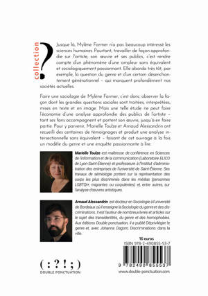 Jusque là, Mylène Farmer n’a pas beaucoup intéressé les sciences humaines. Pourtant, travailler de façon approfondie sur l'artiste, son oeuvre et ses publics, c’est rendre compte d’un phénomène d’une ampleur sans équivalent et sociologiquement passionnant, à plus d’un titre. Elle aborda très tôt, par exemple, la question du genre et d’un certain désenchantement générationnel – qui marquent profondément nos sociétés actuelles. <br /> <br /> Faire une sociologie de Mylène Farmer, c’est donc observer la façon dont les grandes questions sociales sont traitées, interprétées, mises en texte et en image. Mais une telle étude ne peut faire l’économie d’une analyse approfondie des publics de l’artiste – tant ses fans accompagnent et portent son oeuvre, jusqu’à en faire partie. Pour y parvenir, Marielle Toulze et Arnaud Alessandrin ont recueilli des centaines de témoignages et produit une analyse inédite – faisant de cet ouvrage à la fois un modèle du genre et une enquête passionnante à lire. <br />
