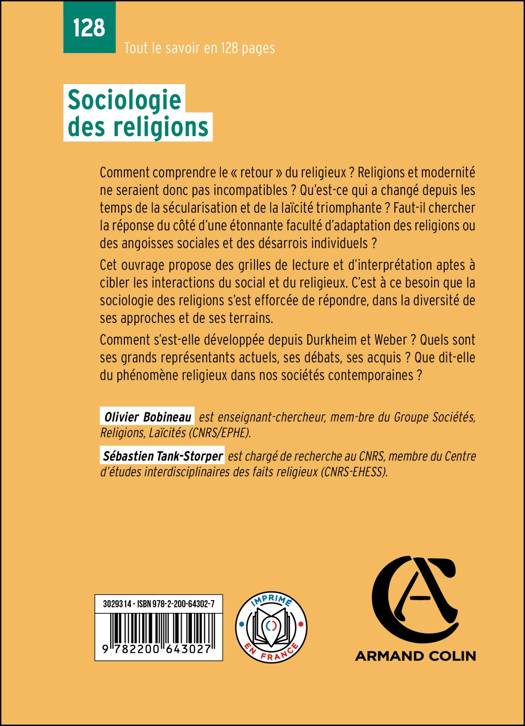 Cette 2e édition refondue propose des grilles de lecture et d’interprétation aptes à cibler les interactions du social et du religieux. C’est à ce besoin que la sociologie des religions s’est efforcée de répondre, dans la diversité de ses approches et de ses terrains. Comment s’est-elle développée depuis Durkheim et Weber ? Quels sont ses grands représentants actuels, ses débats, ses acquis ? Que dit-elle du phénomène religieux dans nos sociétés contemporaines ?