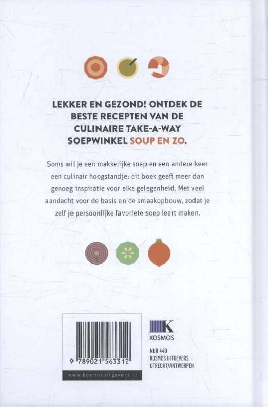 In Soep deelt de culinaire take-a-way soepwinkel Soup en Zo de beste recepten voor lekkere en gezonde soep. Soep is het nieuwe sap: supergezond en altijd lekker! Met behulp van de Soep-cheffen van het Amsterdamse Soup en Zo vind je in dit boek je favoriete soep voor elke dag. Soms wil je een makkelijke soep en een andere keer een culinair hoogstandje: Soep geeft meer dan genoeg inspiratie voor elke gelegenheid. Er wordt veel aandacht geschonken aan de basis en de smaakopbouw, zodat je zelf je persoonlijke favoriete soep leert maken.