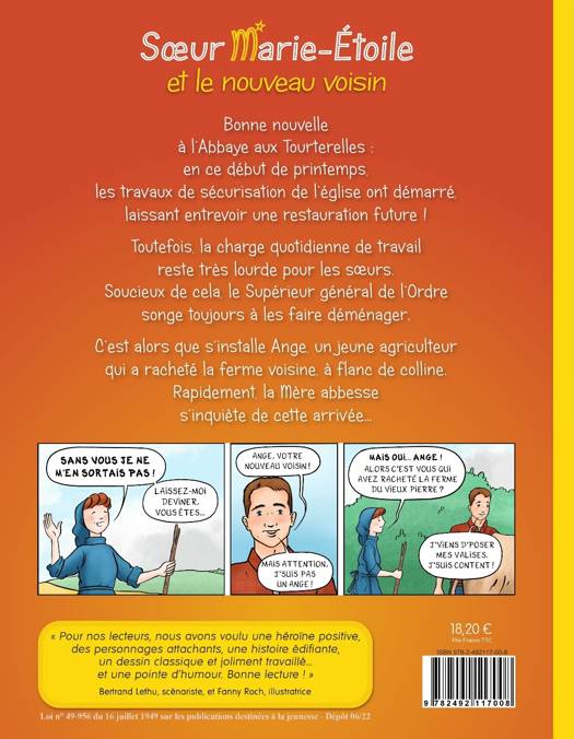 Bonne nouvelle à l’Abbaye aux Tourterelles : en ce début de printemps, les travaux de sécurisation de l’église ont démarré, laissant entrevoir une restauration future ! Toutefois, la charge quotidienne de travail reste très lourde pour les sœurs. Soucieux de cela, le Supérieur général de l’Ordre songe toujours à les faire déménager. C’est alors que s’installe Ange, un jeune agriculteur qui a racheté la ferme voisine, à flanc de colline. Rapidement, la Mère abbesse s’inquiète de cette arrivée…
